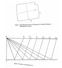 A compressional wave velocity model is presented for the upper few kilometers of Thomson in McDuffie county, Georgia. The velocities were determined from refractions, that is first arrivals, on individual seismic reflection records. The refractions are clear, and it is possible to define the gross structure in addition to the predominant velocity layers of 2.8, 3.7, 4.5 and 6.1 km/s. The observed velocity model implies pronounced variations in thickness of the tertiary, Mesozoic and Paleozoic strata and extreme structural relief of the crystalline basement. The most conspicuous feature shown by the velocity data is a horst, an intrarift uplift of the Precambrian basement.